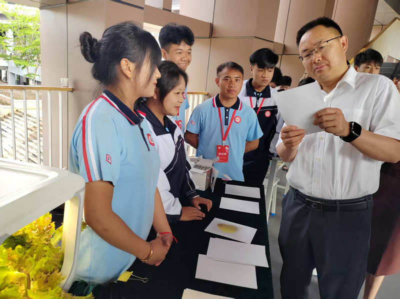 刘永宽一行在澜沧县职业高级中学苏美强书记、汪志颖校长的陪同下,参观了学校的实训基地、教学设施及学生作品展示区,详细了解了学校在专业建设、课程设置、学生就业等方面的情况。