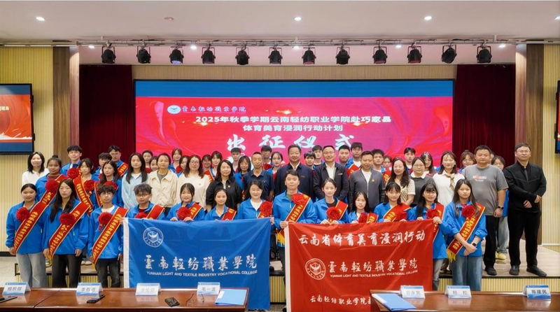 2025年12月31日,云南轻纺职业学院举行2025年秋季学期体育美育浸润行动计划表彰总结大会,全面总结对口帮扶巧家县第二期浸润行动成果,表彰先进典型,擘画未来发展蓝图。校党委书记毛一波,党委副书记、校长刘永宽等全体校党委委员出席大会,与43名凯旋归来的支教师生及各职能部门、二级学院负责人共聚一堂,见证这份属于全体轻纺人的荣耀与担当。