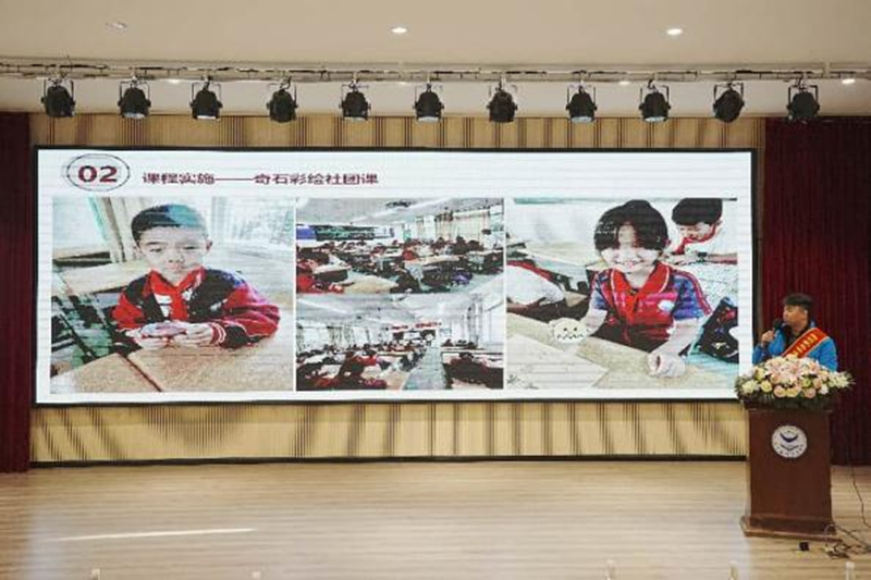 在支教学生代表分享环节,驻点巧家县职业高级中学及天生小学的王春怡、驻点天生小学的赵申瑜、驻点中寨乡九年一贯制学校的谭丹三位同学,动情讲述了从"课堂初体验"到"游刃有余"的蜕变历程。他们不仅是学科辅助教学的承担者,更是"一校一品"特色的打造者,用专业与热忱在红土地上播撒下语言的种子、舞动的梦想与翰墨的芬芳,让轻纺的职教优势在乌蒙深处开花结果。