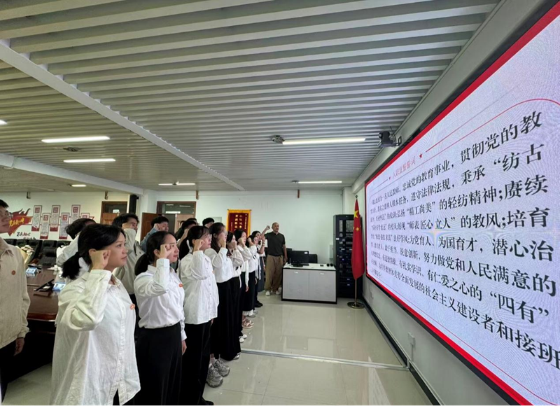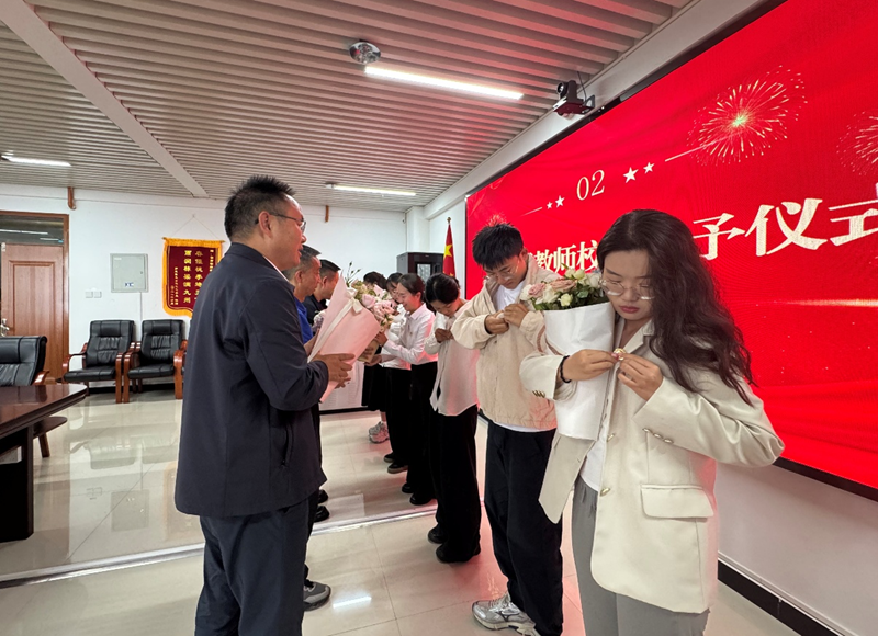 随后举行庄严的校徽授予仪式。校领导逐一为新教师佩戴校徽,欢迎他们正式成为云南轻纺职业学院大家庭的一员。随后,在办公室(党委巡察办)李玮主任带领下,新教师庄严宣誓,表达恪守师德、奉献教育的决心,强化了职业荣誉与责任。