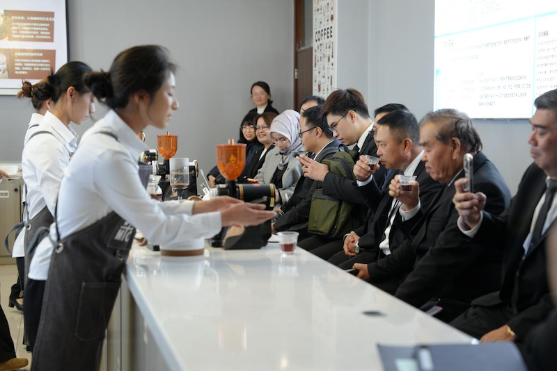 泰国访问团实地走访了我校各二级学院及实训场所,重点参观了康养产业、人工智能、新能源汽车、电子商务、工艺实训、美育展示及民族服饰研学等特色教学空间。通过现场考察,代表团直观了解了各专业的办学条件与成果,为今后深入合作奠定了坚实基础。