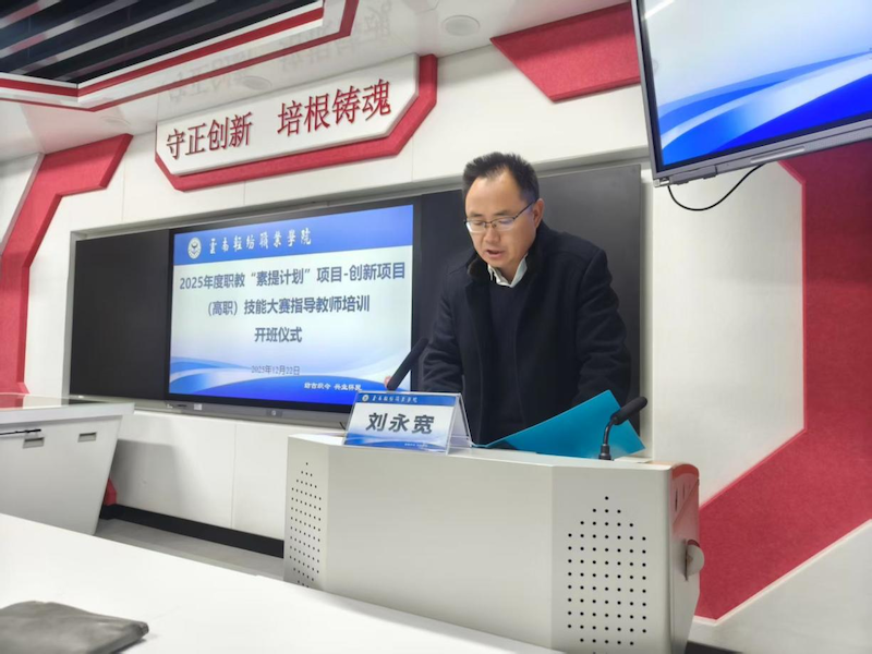 12月22日上午9:00,学校举行了云南省2025年职业院校教师素质提高计划培训(职教国培)项目开班仪式。学校党委副书记、校长刘永宽参加仪式并致辞,仪式由社会服务中心副主任王霞主持。