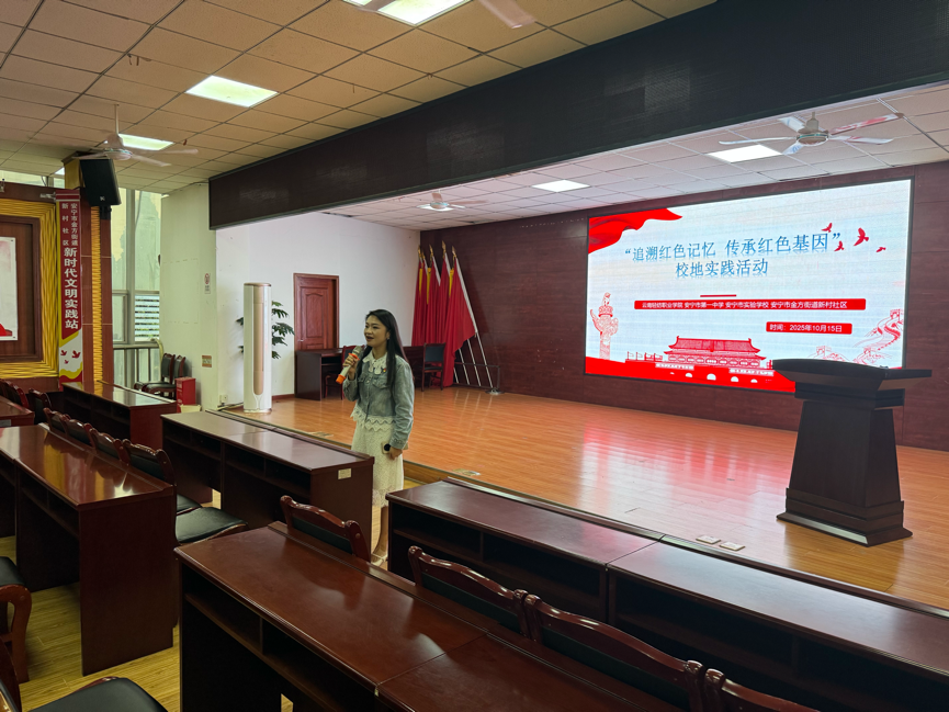 10月15日下午,云南轻纺职业学院牵头组织安宁市第一中学、安宁实验中学三校师生赴学院校外思政实践教学基地——安宁市金方街道新村社区,开展大中小学思政课一体化校外实践活动。此次活动以“追溯红色记忆 传承红色基因”为主题,旨在通过整合区域红色资源,打通大中小学思政教育的学段壁垒,构建“学段衔接、资源共享、协同推进”的一体化育人格局。