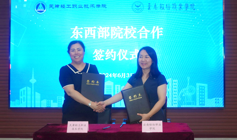 会上,双方就专业发展、师资建设、实习实训、就业创业、产教融合、校企合作等方面内容进行深入探讨与交流,同时柏松代表学校与天津轻工职业技术学院副院长刘悦凌共同签署了东西部院校合作协议意向书。
