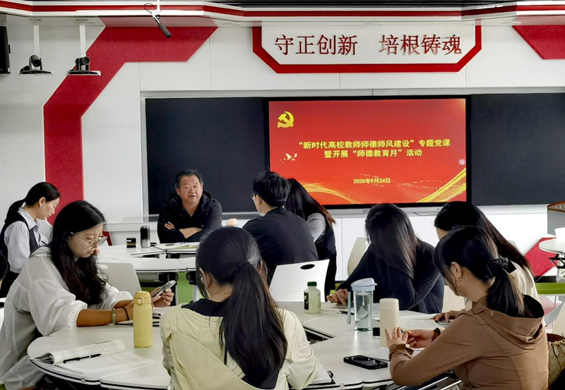 为全面加强新时代教师队伍建设,大力弘扬教育家精神,营造全社会尊师重教的良好氛围,按照《云南省教育厅关于开展2025年“师德教育月”活动的通知》要求与学校活动方案,党委书记毛一波到马克思主义学院对思政课教师师德师风建设工作作指导。马院党支部副书记李丽娇为支部讲授“新时代高校教师师德师风建设”专题党课。