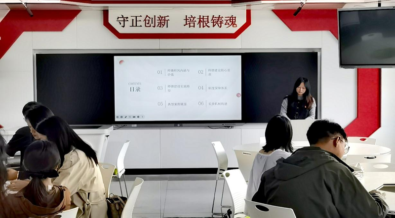 会议指出,全体思政课教师要深刻认识师德师风建设的极端重要性,自觉对标“四有”好老师标准,将师德修养融入教育教学全过程,以德立身、以德立学、以德施教。在日常教学中坚持言行雅正,坚守学术诚信。思政课教师要主动关心关爱学生,做学生为学、为事、为人的示范者。要以习近平新时代中国特色社会主义思想为指导,深入贯彻党的教育方针,落实立德树人根本任务,把师德师风作为评价思政课教师的重要标准,持续强化思想政治引领和职业道德养成。全体思政课教师以“师德教育月”为契机,深入开展学习活动,践行师德规范,深入开展教师身心健康活动、正面宣传活动、警示教育活动、人文关怀活动等。