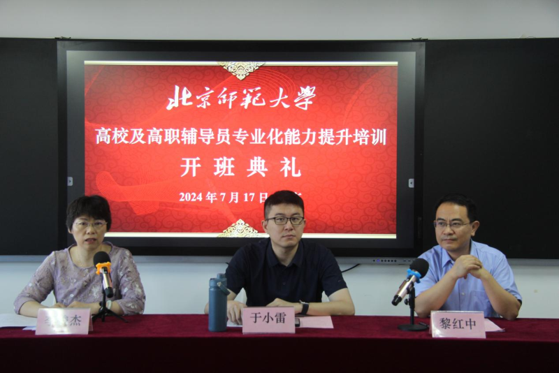 在开班仪式上,黎红中首先感谢参培的各院校对北师大的信任,对学员的到来表示热烈的欢迎。他介绍了北师大的悠久历史和教育使命,同时还介绍了北师大继续教育与教师培训学院的培训体系,他强调辅导员是大学生在校期间接触频次最高、辐射学生数量最广、教育影响深度最强的群体,是落实立德树人根本任务的主力军,是新时代铸魂育人的中坚力量。希望通过此次培训,能让大家学有所获,悟有所得。