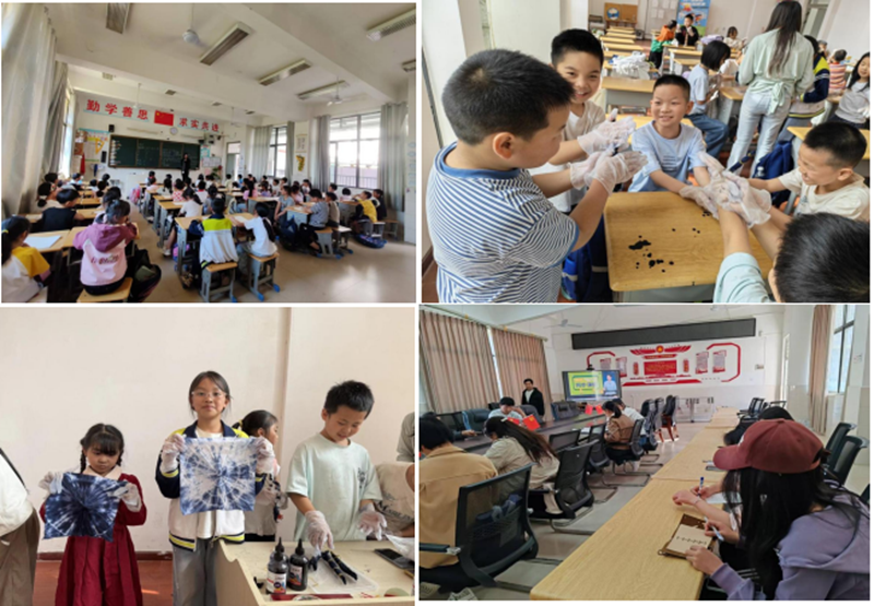 金沙小学立足地域特色,将移民文化教育与非遗扎染深度融合。支教团队通过图文讲解、故事分享、心得交流等形式,把移民历史、奉献精神融入日常教学,厚植学生家国情怀。同步启动非遗扎染社团,带领学生沉浸式体验扎结、染色等传统技艺,并举办校园扎染主题美术作品展,让非遗文化在校园落地生根。此外,团队积极参与学校教研活动,通过集体备课、课堂观摩、评课研讨,助力科学课堂教学质量稳步提升。