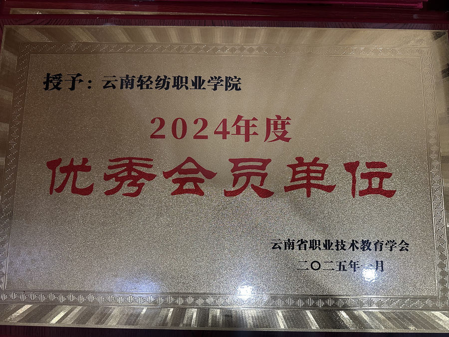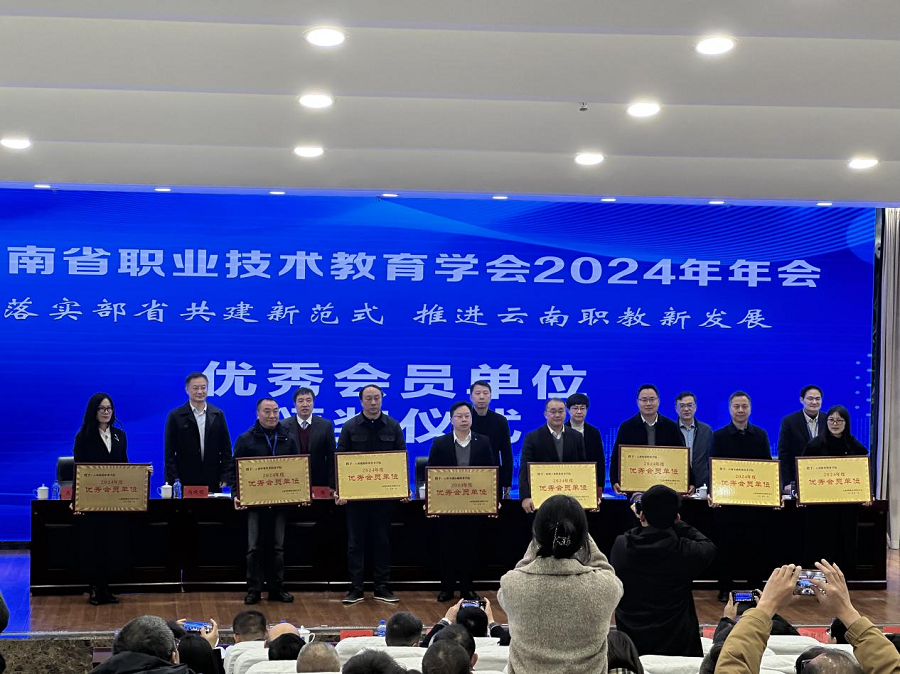 2025年1月3日,云南省职业技术教育学会“优秀会员单位”评选结果公布,学校在众多会员单位中脱颖而出,获评2024年度云南省职业技术教育学会“优秀会员单位”称号。学校校长、云南省职业技术教育学会常务理事刘永宽代表学校领奖。